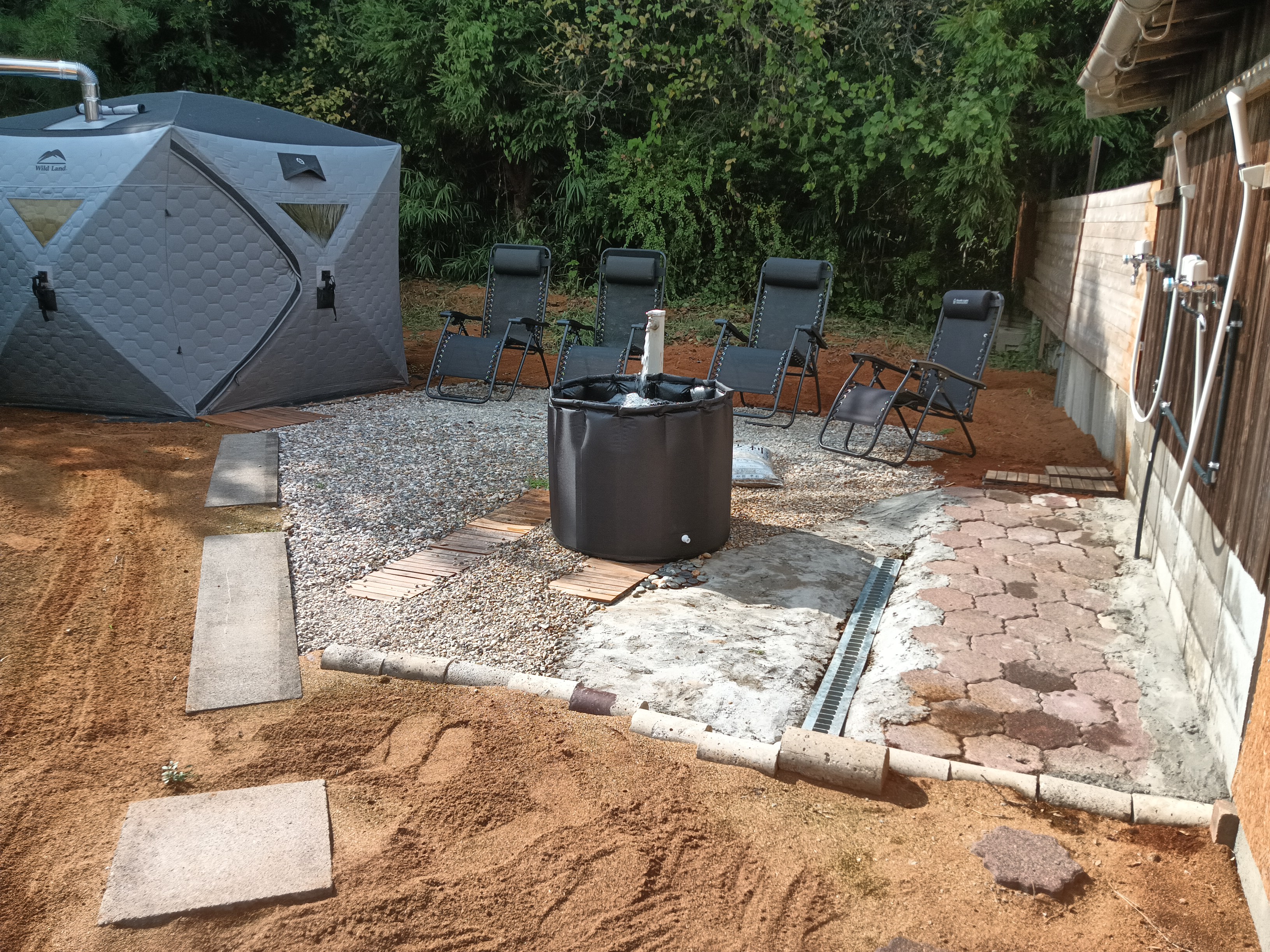 宮田町カフェサウナ 宮田町カフェサウナ 『サウナに行きたいけど、知らない人と一緒はイヤ・・・』『もっとゆっくりしたいのに、この後の予約が入ってる みたいだから出なきゃ・・・』安心してください。当店は、一日一組限定の完全予約制のシステムです。時間に追われる事も一切ありません。家族風呂のような感じの雰囲気造りです。ご家族、友人、カップルでご利用ください。 ●ご利用人数 1日1組限定(1~4名様)貸切制 ●ご利用可能時間11:00~16:00●料金(全て税込) A .おひとり様のみ ご利用の場合 (1名でご利用の場合) 料金 1名価格 3,300円 B .おふたり様以上 ご利用利用の場合(2~4名でご利用の場合) 料金 1名価格 2,400円 ※ご利用時間は、貸切のため制限はありません(営業時間内でのご利用)※土日祝の設定料金はありません●薪代 一束追加 1,000円 (但し、1組に対して一束サービス)●ミネラルウォーター 2L 一人1本無料サービス●フェイスタオル販売 500円 (新品)●バスタオル販売 1,000円(新品)※ 無料で、脱衣場・ロッカー・ドライヤーは備えております。-----------◆注意事項◆----------① 当店は、宮田町カフェに隣接していますので受付は、宮田町カフェにて行っております。② サウナ施設(公衆浴場)とは違い、テントサウナ(組立式)、薪ストーブ(ロウリュウ可)、水風呂(組立式)をレンタルでお貸しするシステムです。シャワーは3基あり、海水浴場やキャンプ場にあるコインシャワーを備えています。(温水1基) ③ OPEN11:00~CLASED16:00までの間の時間でお過ごしください。④ お一人様から、カップル・ご夫婦・ご友人など1名から4名のご利用が可能です。⑤ 連絡事項にはご利用される人数とチェックインされる時刻を記載ください。⑦ 各自、必ず水着を着用でお願いします。⑧ 施設での飲食の持ち込みはお断りします。 (カフェが隣接しており食事・お飲み物・スイーツの提供ができます)⑨ 18歳未満の入場は、お断り申し上げます。(同伴であってもお断り申し上げます)⑩ 屋外施設の為、雨天及び降雪の場合はご予約を取り消しさせていただく場合があります。※ その他注意事項は、受付の際ご説明させていただきます。ご予約は、以下の予約サイトまたは、お電話にてお申込みください。予約サイトhttps://reserva.be/miyatachocafe/reserve?mode=service_staff&search_evt_no=5feJwzMzY3MjECAARVATk電話申込080-3865-0038 (火水を除く11~17時受付) 電話・問い合わせをする